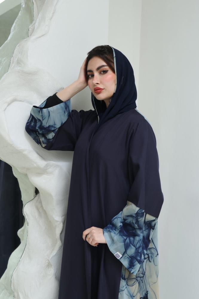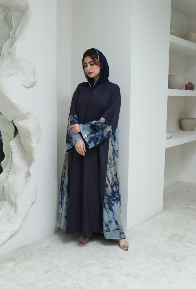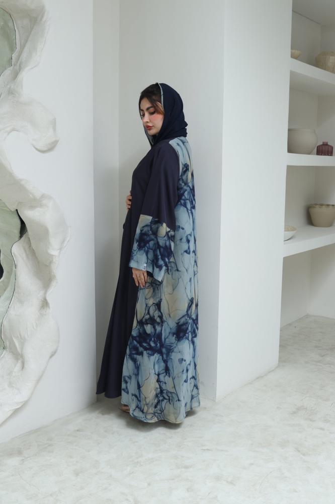 عباية كريب مع شيفون قصه نص كلوش واكمام واسعه